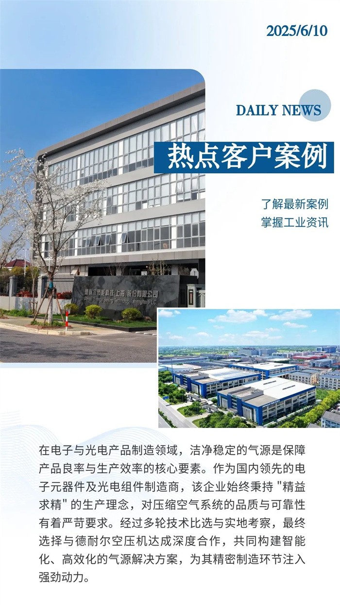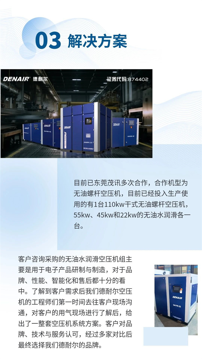 德耐爾無(wú)油水潤(rùn)滑空壓機(jī):電子精密制造的 “凈源守護(hù)者”
